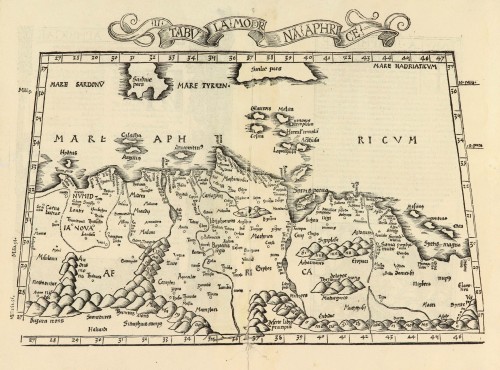 Old, antique ptolemaic map of Eastern Algeria, Tunisia, and Western Libya, by Lorenz Fries.