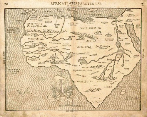 This is one of ten maps in Bünting's Itinerarium, in which the author, a theological commentator, rewrote the Bible as an illustrated travel book. Other maps in the series bear out his imaginative approach to cartography, which pictures the World in the form of a cloverleaf, Europe as the Queen of the World, and Asia as Pegasus.