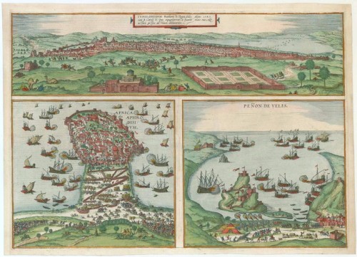 Tunis, Mahdia & Penon de Veles, by Georg Braun & Frans Hogenberg. 1575
