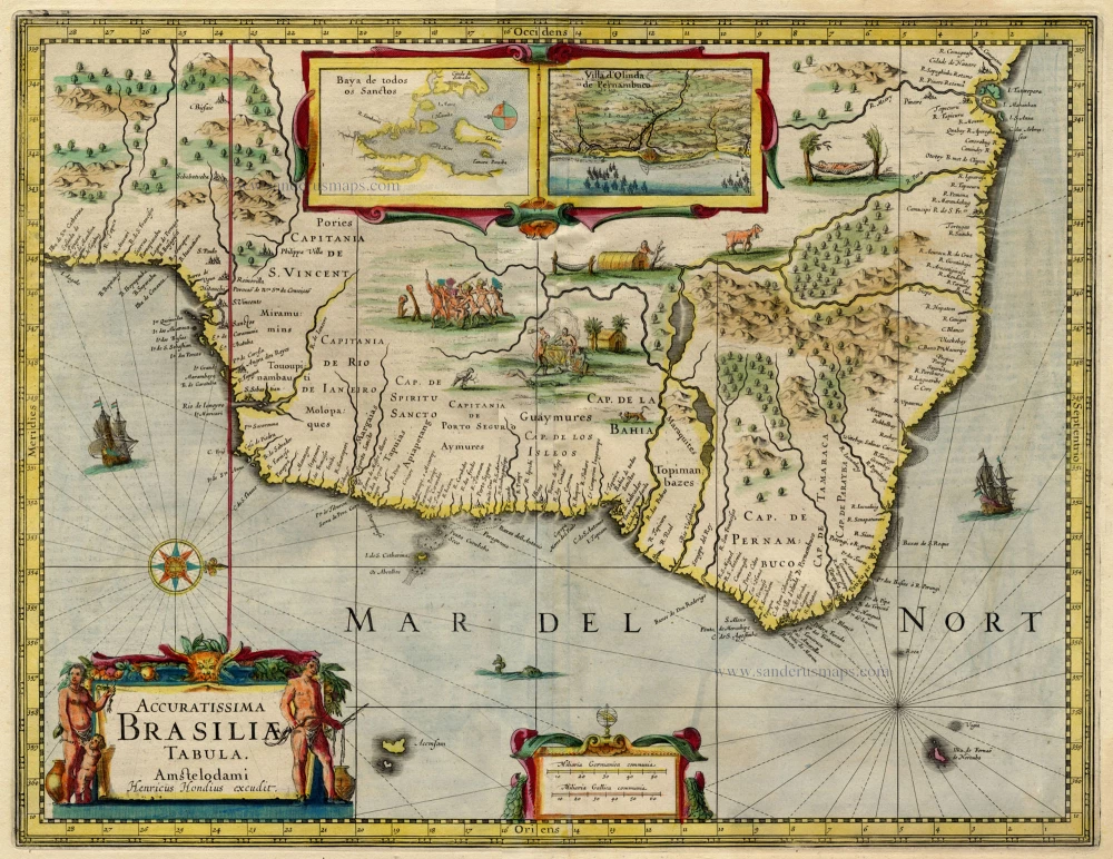 Joannes Janssonius (Arnhem, 1588-1664), son of the Arnhem publisher Jan Janssen, married Elisabeth Hondius, daughter of Jodocus Hondius, in Amsterdam in 1612. After his marriage, he settled down in this town as a bookseller and publisher of cartographic material. In 1618, he established himself in Amsterdam next door to Blaeu’s bookshop. He entered into serious competition with Willem Jansz. Blaeu when copying Blaeu’s Licht der Zeevaert after the expiration of the privilege in 1620. His activities concerned the publication of atlases, books, single maps, and an extensive book trade with branches in Frankfurt, Danzig, Stockholm, Copenhagen, Berlin, Koningsbergen, Geneva, and Lyon. In 1631, he began publishing atlases together with Henricus Hondius.