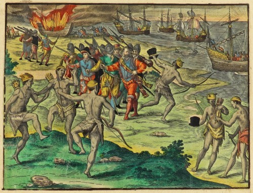 Theodore de Bry died on March 27th, 1598. At this time, the highly successful and lucrative America series had already extended to seven volumes, and there would be fourteen. To these must be added the 'Elenchus', published in 1634 by Merian, which was a collective title and table of contents of these same volumes.