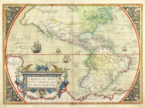 With a bulge on the coast of South America. This map is regarded by many as the most beautiful map of the Western Hemisphere produced in the sixteenth century.