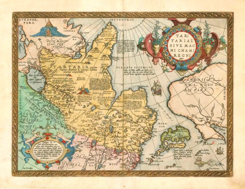 Old, antique map of Tartary with the Northern Pacific, by A. Ortelius.
