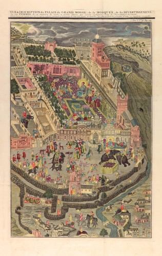 Vue & Description du Palais du Grand Mogol, de sa Mosquée, de ses Divertissemens, de ses Femmes, de sa manière de vivre, & autres choses qui seront expliquée dans la Dissertation suivante.