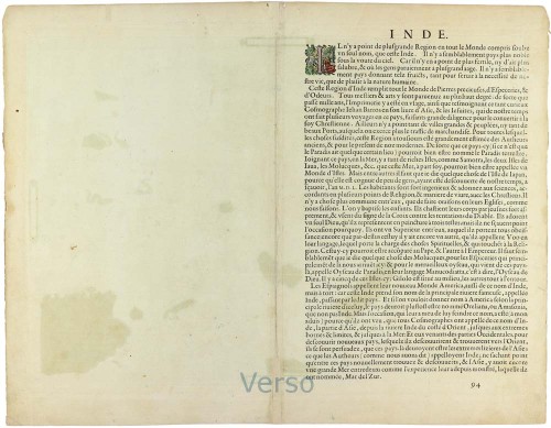 This map represents a synthesis of the best readily available information on Southeast Asia and the East Indian Islands from Italian, Portuguese and Spanish sources. The map extends from Portuguese India in the west, through China, Japan, Southeast Asia and the East Indies (Indonesian archipelago), including New Guinea, to the Northwest coast of America. Sumatra and Java are shown as heavily distorted, together with the principal spice islands. Still, the emergent shapes of Borneo and the Philippines are apparent, as is the general configuration of the East Indian archipelago. Java is depicted as an island with a highly exaggerated shape and no topographic detail along its southern coast, separated from Beach, a presumed peninsula on the southern or 'fifth' continent. Borneo is mapped in the place of the fictitious 'Java Minor' that frequently appeared at that latitude on the 'modern' Ptolemaic maps of the region. However, only the part of Borneo north of the equator is shown to the west of a barely recognisable Celebes (Sulawesi), where no hint is given of the very distinctive peninsula geography of the island.