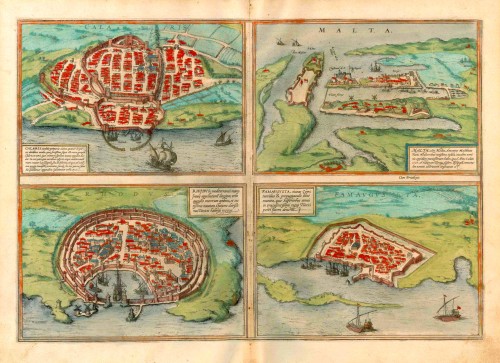 Cagliari, Malta, Rhodos and Famagusta, by Georg Braun and Frans Hogenberg. 1582