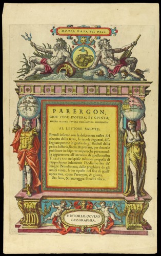 Atlas Title Page of the Parergon, by Abraham Ortelius.