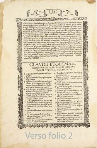 Title page + second folio of Lorenz Fries' 1525 Ptolemy Atlas.