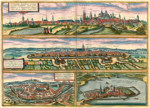 Nürnberg - Ulm - Salzburg - Lindau by Braun & Hogenberg 1572-1624