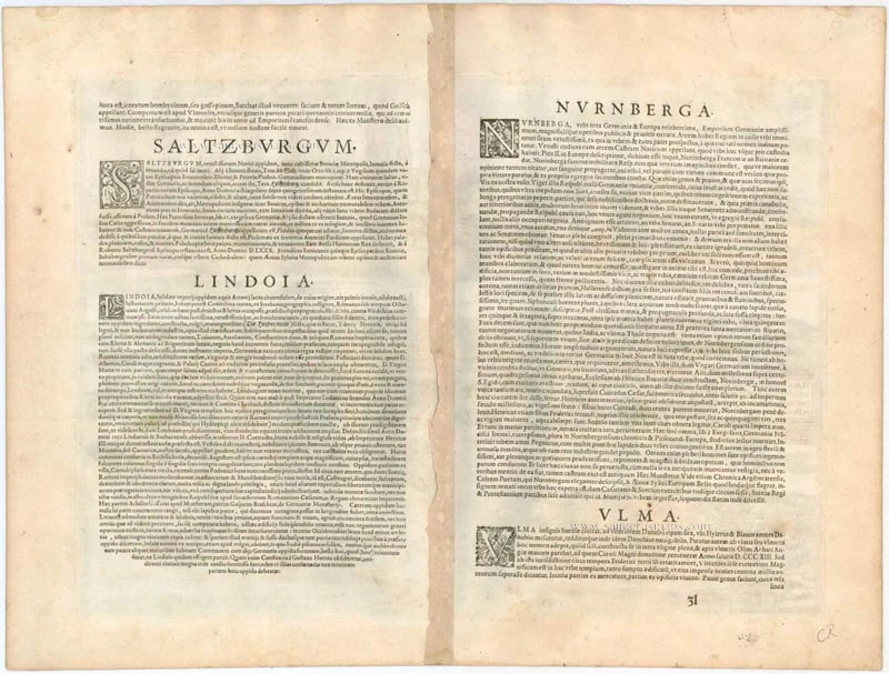 Nurnberga Florentissimum Germaniae Emporium, ... [on sheet with] Ulma Imperialis in Suevia [and] Saltzburg Urbis Salisburgensis Genvina Descriptio [and] Lindaw - Lindoia, Oppidum Imperij insulare, ...