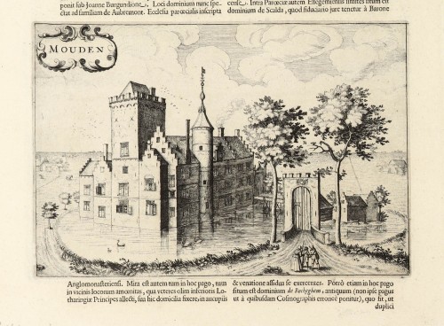 Old, antique view of the castle Mouden in Moen (Zwevegem), by Antonius Sanderus.