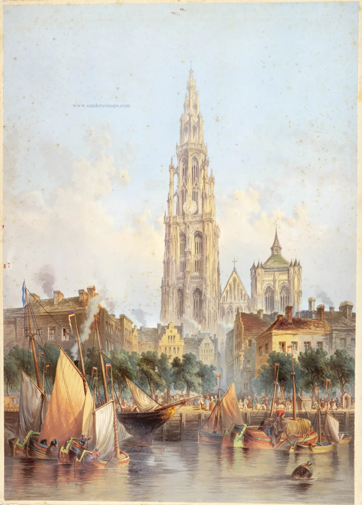 Antwerp Cathedral, large lithograph. c. 1850