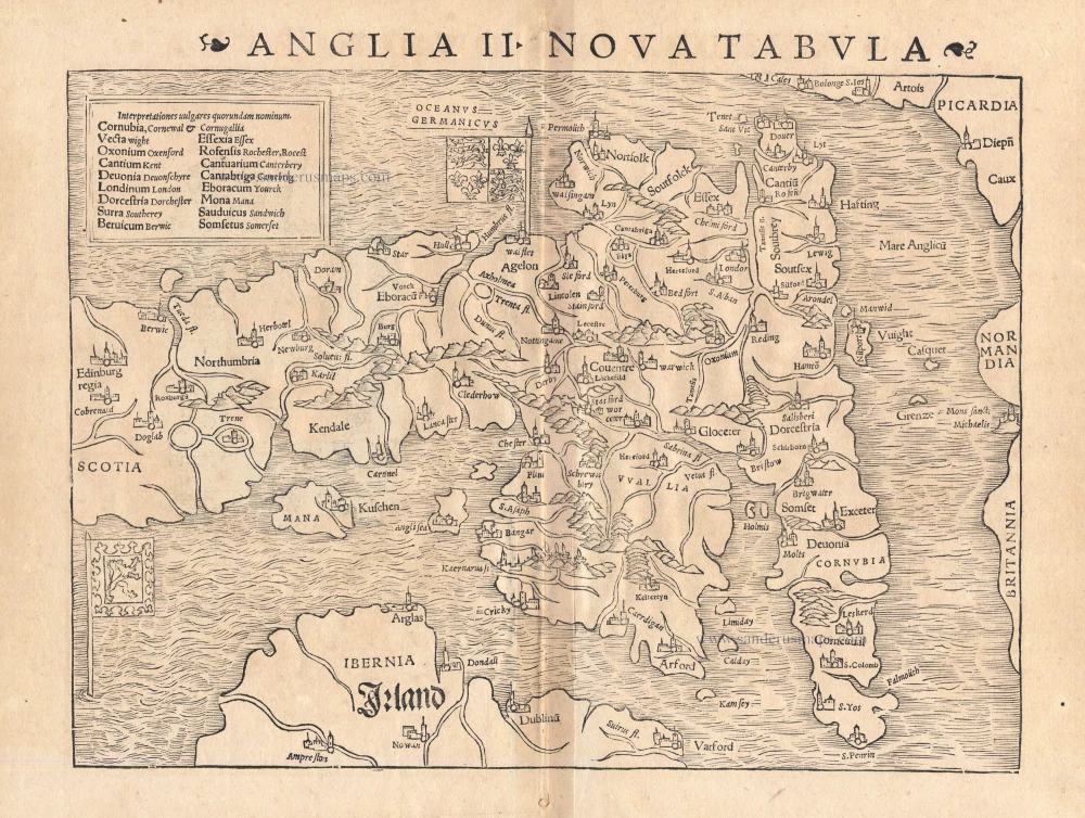 Antique map of England by S. Munster 1542