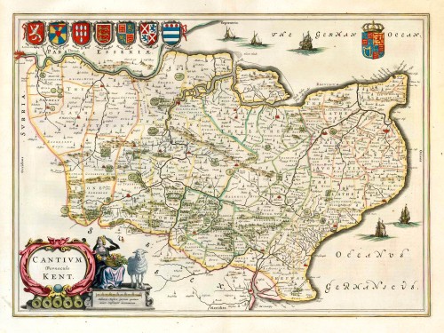 In 1618, another mapmaker, bookseller and publisher, Johannes Janssonius, established himself in Amsterdam next door to Blaeu's shop. No wonder these two neighbours began accusing each other of copying and stealing their information and became fierce competitors who did not have a good word to say about each other. In about 1621 Willem Jansz. decided to end the confusion between his name and his competitor's and assumed his grandfather's nickname, 'blauwe Willem' ('blue Willem'), as the family name; after that, he called himself Willem Jansz. Blaeu.