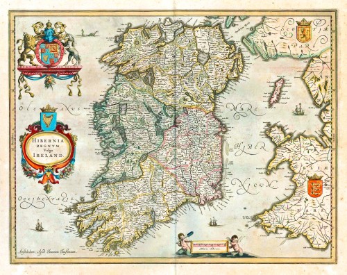 Joannes Janssonius (Arnhem, 1588-1664), son of the Arnhem publisher Jan Janssen, married Elisabeth Hondius, daughter of Jodocus Hondius, in Amsterdam in 1612. After his marriage, he settled down in this town as a bookseller and publisher of cartographic material. In 1618, he established himself in Amsterdam next door to Blaeu’s bookshop. He entered into serious competition with Willem Jansz. Blaeu when copying Blaeu’s Licht der Zeevaert after the expiration of the privilege in 1620. His activities concerned the publication of atlases, books, single maps, and an extensive book trade with branches in Frankfurt, Danzig, Stockholm, Copenhagen, Berlin, Koningsbergen, Geneva, and Lyon. In 1631, he began publishing atlases together with Henricus Hondius.