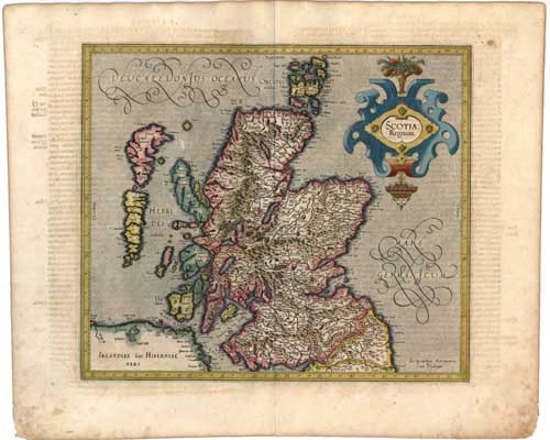 Antique map of Scotland by G. Mercator, oriented to the North
