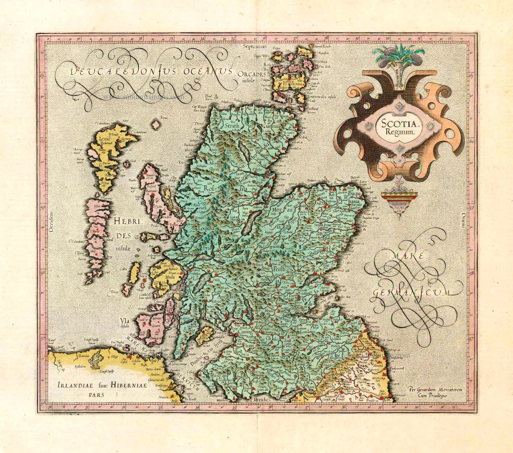 Old antique map of Scotland, by Gerard Mercator. 1609