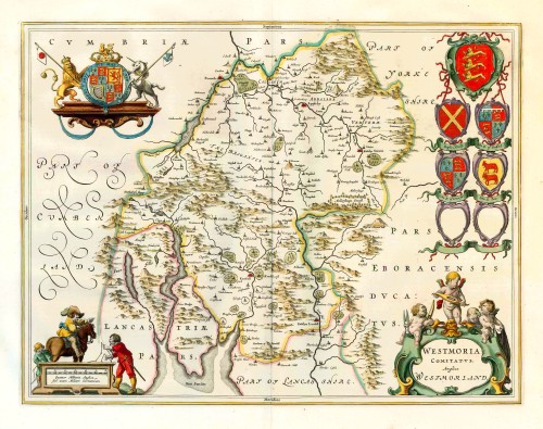 Old, antique map of Westmoreland by J. Blaeu