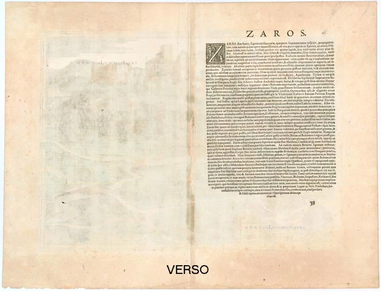 Antique map of Slovakia - Velky Saris by Braun & Hogenberg 1618