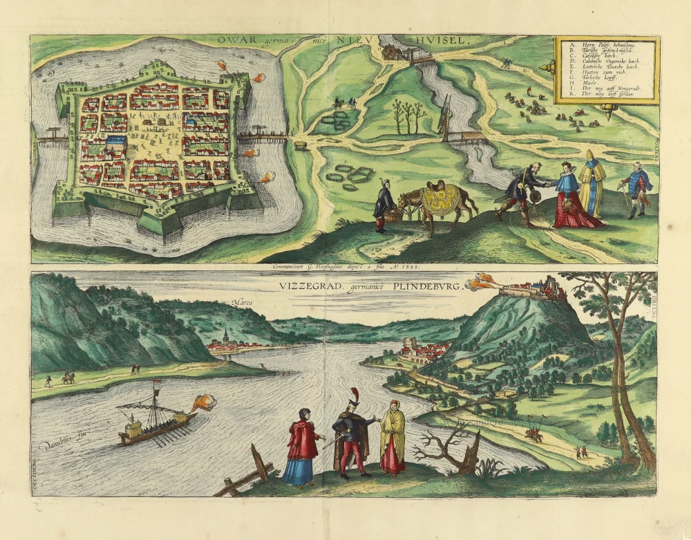 Nové Zámky - Visegrád, by Georg Braun and Frans Hogenberg after G. Hoefnagel and son, 1595.