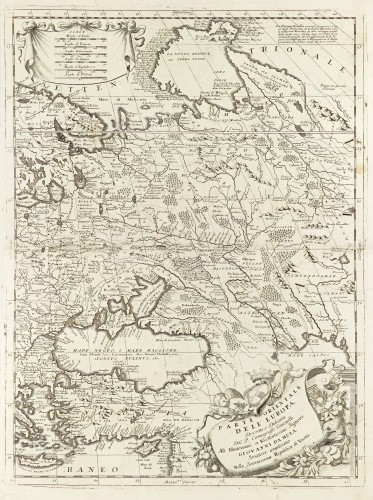 Other volumes of the atlas which contain maps are Isolario, two parts (1696-8), with detailed maps and plans, mostly of islands; Corso geografico, two parts based on the edition 1694-7; Libro de’ globi (1697); and Lo Specchio del Mare, a reprint of Levanto's Lo Specchio del Mare Mediterraneo of 1664.