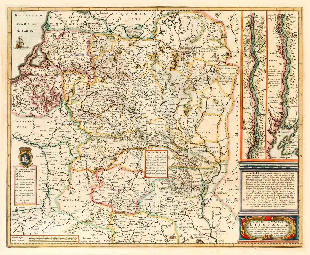 Old antique map of Lithuania, by Henricus Hondius. 1641