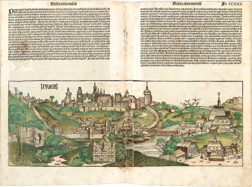 Old, antique view of Prague (Praha), by Hartman Schedel.