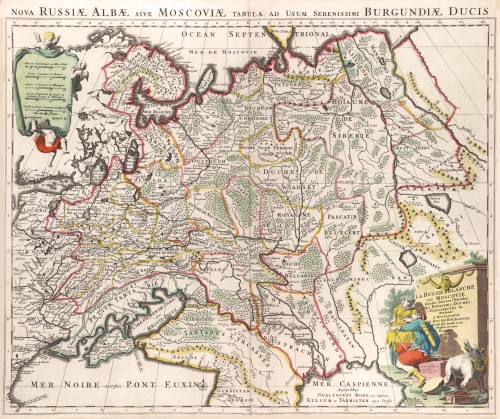 [Title above map:] Nova Russiae Albae sive Moscoviae Tabula, ad usum serenissimi Burgundiae Ducis.