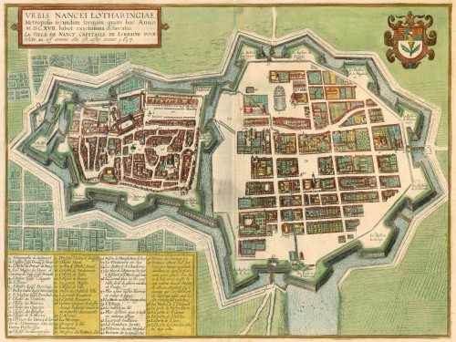 Urbis Nancei Lotharingiae Metropolis secundum formam quam hoc Anno M.DC.XVII. habet exactissima delineatio. - La Ville de Nancy Caiptalle de Lorraine pour traicte au vif comme elles est ceste annee 1617.