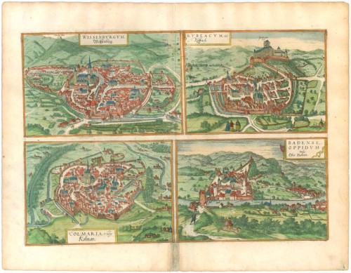 Wissemburg, Rouffach, Colmar, Baden, by Braun & Hogenberg. 1575-1612