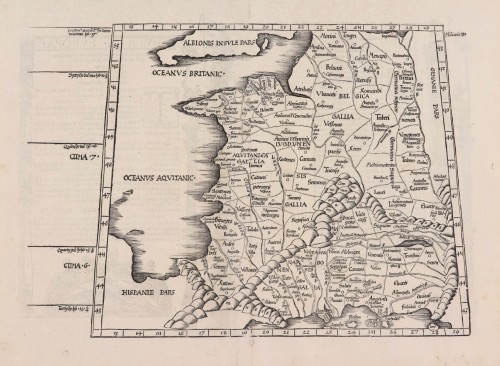 Old, antique Ptolemaic map of France, by Lorenz Fries.