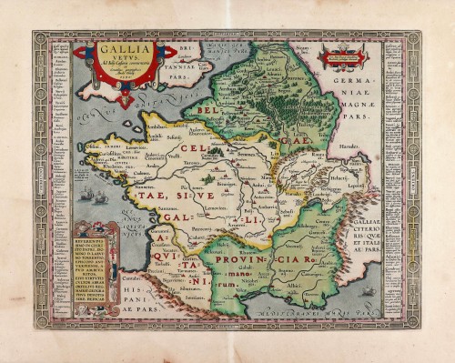 Old, antique map of Ancient France by Abraham Ortelius.