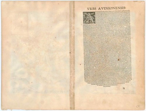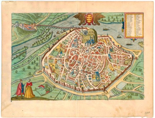 COMMENTARY BY BRAUN: "Avignon is a highly famed city with a wonderful church in honour of the Virgin Mary, which enjoys many privileges. This city has a magnificent cardinals' palace and a veritable Carthusian monastery surpassing all others in France. The Roman Papacy had its seat in this city for 70 years. All around the city is good fertile soil, much silk is dyed here and there are also many paper mills due to its favourable location near the water. Not to be forgotten is the university, which flourished particularly during the time when the Pope had his seat here."