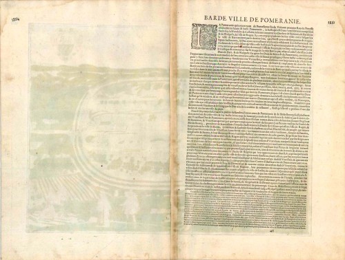 COMMENTARY BY BRAUN (on verso): "Barth has a large market at which one can buy all the necessities of daily life at a fair price, thanks to its fertile land and favourable location by the sea. Since there are fertile soils around the city and in the whole duchy, it has an abundance of salt water and other fish, game, cattle, grain, butter, honey, wax, and other such things. The citizens' wealth comes from livestock farming and trade, which they conduct very profitably with the kingdoms of Denmark, Norway and other distant lands far across the ocean. They brew a tasty beer, which they also trade-in."