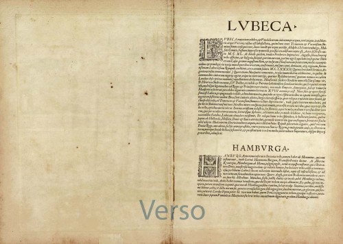 Title: Lubeca Urbs Imperialis ... Inclytae Hanseaticae Societatis Caput. [on sheet with] Hamburga, Florentissimum Inferioris Saxoniae Emporium, Anglorum frequetatione hoc tepore celeberrimum A° Dni: M.D.LXXII.