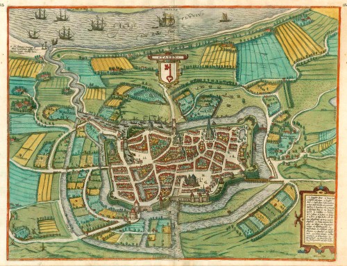 Antique map - bird's-eye view plan of Staden, by Georg Braun & Frans Hogenberg.