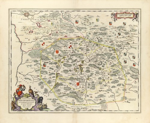 Joannes Janssonius (Arnhem, 1588-1664), son of the Arnhem publisher Jan Janssen, married Elisabeth Hondius, daughter of Jodocus Hondius, in Amsterdam in 1612. After his marriage, he settled down in this town as a bookseller and publisher of cartographic material. In 1618, he established himself in Amsterdam next door to Blaeu’s bookshop. He entered into serious competition with Willem Jansz. Blaeu when copying Blaeu’s Licht der Zeevaert after the expiration of the privilege in 1620. His activities concerned the publication of atlases, books, single maps, and an extensive book trade with branches in Frankfurt, Danzig, Stockholm, Copenhagen, Berlin, Koningsbergen, Geneva, and Lyon. In 1631, he began publishing atlases together with Henricus Hondius.