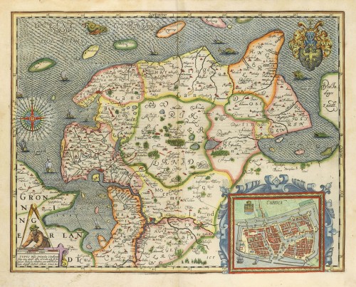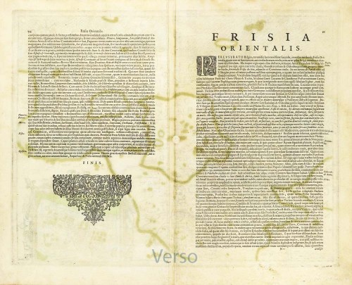 This map is based on the cartographical work of the learned Ubbo Emmius (1547-1625), one of the most important personages in the history of Eastern Friesland. It was first published in Emden and later in Amsterdam by Cornelis Claesz. in 1599. After the death of Cornelis Claesz. (1609), Pieter van den Keere purchased several copperplates at the auction of his estate the following year. Among them was Ubbo Emmius's map of Eastern Friesland.