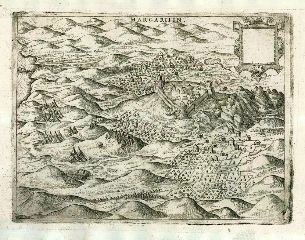 Old, antique map of Margariti by Giovanni Francesco Camocio.