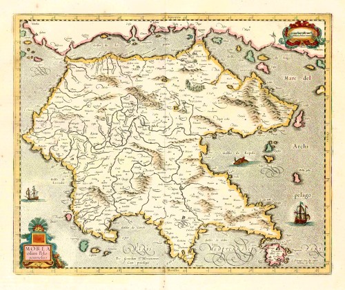 Old, antique map of the Peloponnese, by Gerard Mercator.