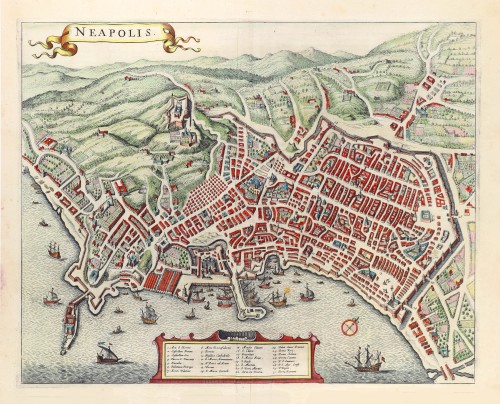 Napels (Napoli) by J. Janssonius, after Georg Braun & Frans Hogenberg.