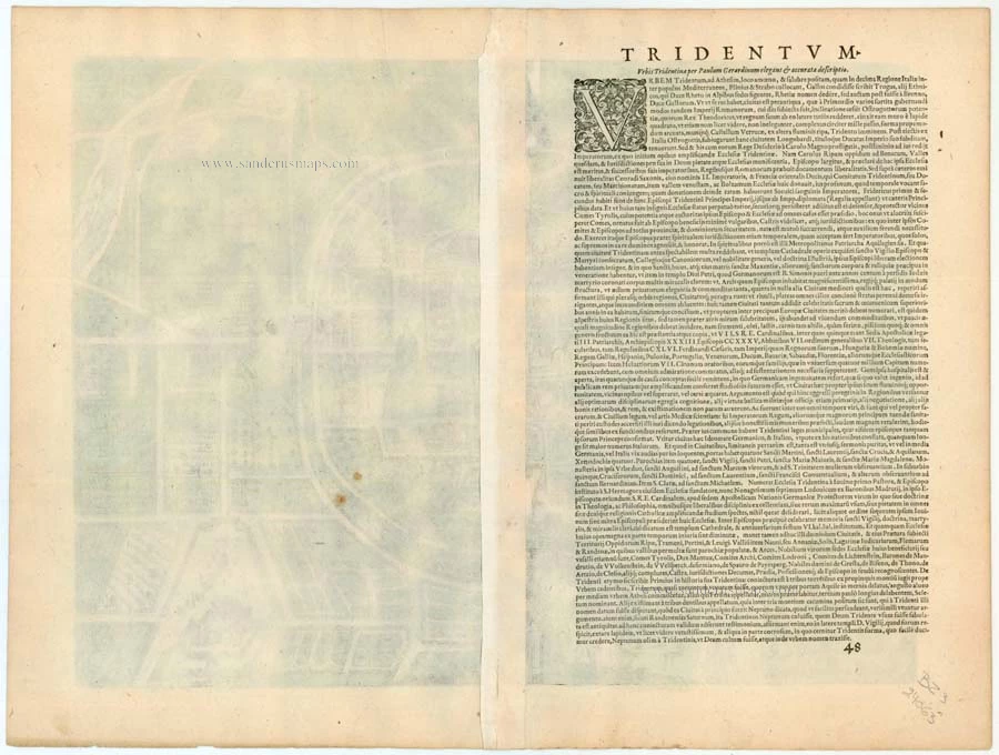Old, antique bird’s-eye view plan of Trente (Trento), by Georg Braun & Frans Hogenberg.