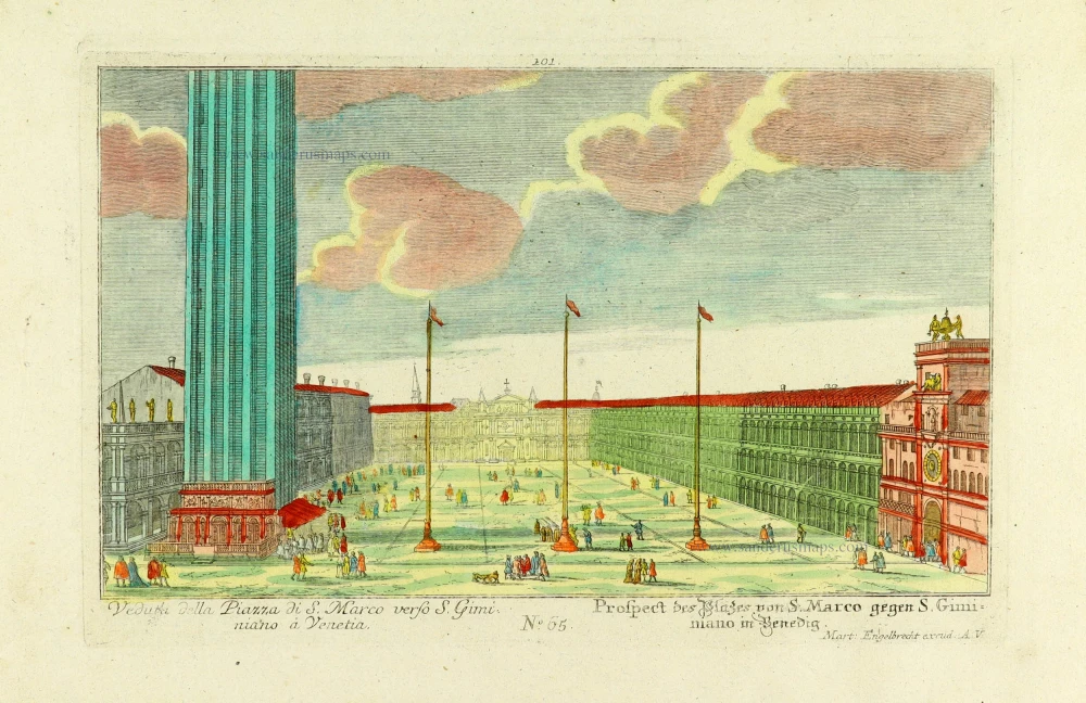Two views of the Piazza di San Marco in Venice (Venezia), by Martin Engelbrecht. c. 1750