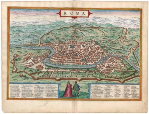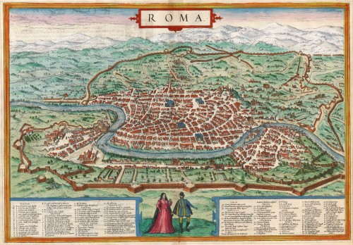 Antique map - bird's-eye view plan of Rome by Braun and Hogenberg 1575