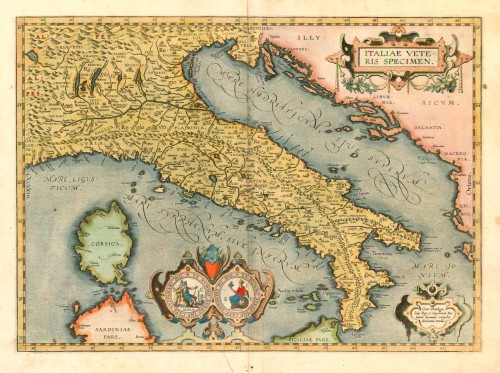 Old, antique map of Ancient Italy, by Abraham Ortelius.