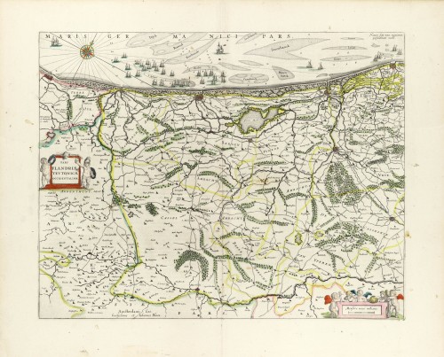 Old, antique map of Western Flanders (West Vlaanderen), by Willem & Joan Blaeu.
