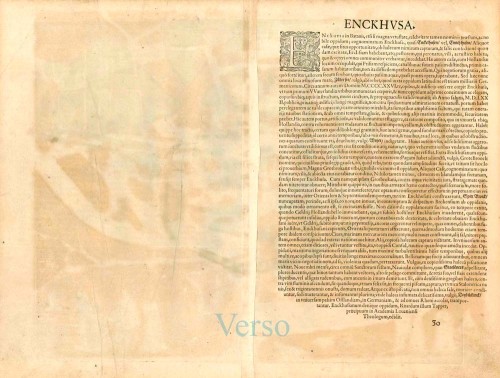 COMMENTARY BY BRAUN: "Although Enkhuizen in Holland is not yet very old, it is already a famous and renowned city. It possesses an excellently situated and wide seaport that is protected by a man-made and heavily fortified dam, as is the practice in all Holland due to the raging of the ocean and the waves."