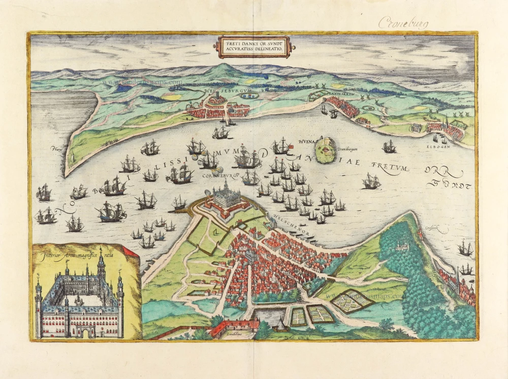 Sound Strait with Helsingborg, Landskrona and Malmö, by Georg Braun and Frans Hogenberg. c. 1593
