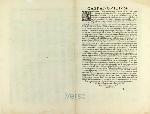 COMMENTARY BY BRAUN (on verso): "After the Turks had held Kostajnica for two years and longer, it was recaptured in 1594 together with the area around Petrinja by the governor of Croatia, Mr Lenckowitz, captain-general under Archduke Maximilian. [...] And the Pasha of Bosnia immediately gathered a stronger army to attack and destroy the fortress and the camp of the Christians. [...] One cannot hope enough that the Christians will bury all hatred, discord and enmity among themselves so that they may tear as many lovely kingdoms, lands and cities as possible from the jaws of this barbaric enemy and, above all, deliver many thousands of souls from oppression."