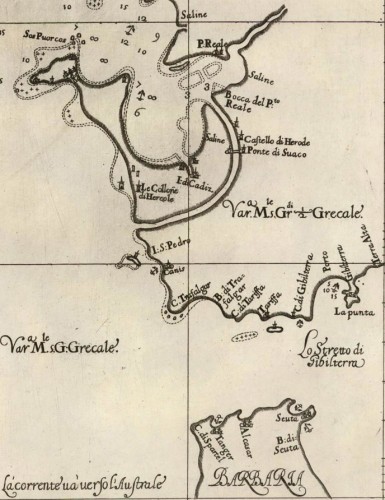 Antique map of Strait of Gibraltar by Dudley, Sir Robert 1646-47